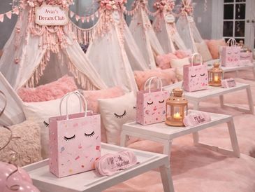 Enjoy a cozy, glamp-style slumber party setup — simple, stylish, and perfect for a sleepover without extra activities.